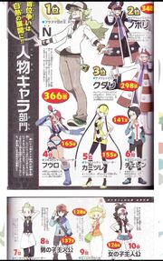 Ingo and Emmet are... surprisingly popular in Japan. According to a poll, the pair were the second and third most popular characters in Black & White respectively, losing only to N himself. In two other polls that were separated by gender, Ingo actually won over N in the women's poll though Emmet ended up being in third place behind N. Quite odd when you take into account the fact that these two aren't that important to the story. They're just some guys.